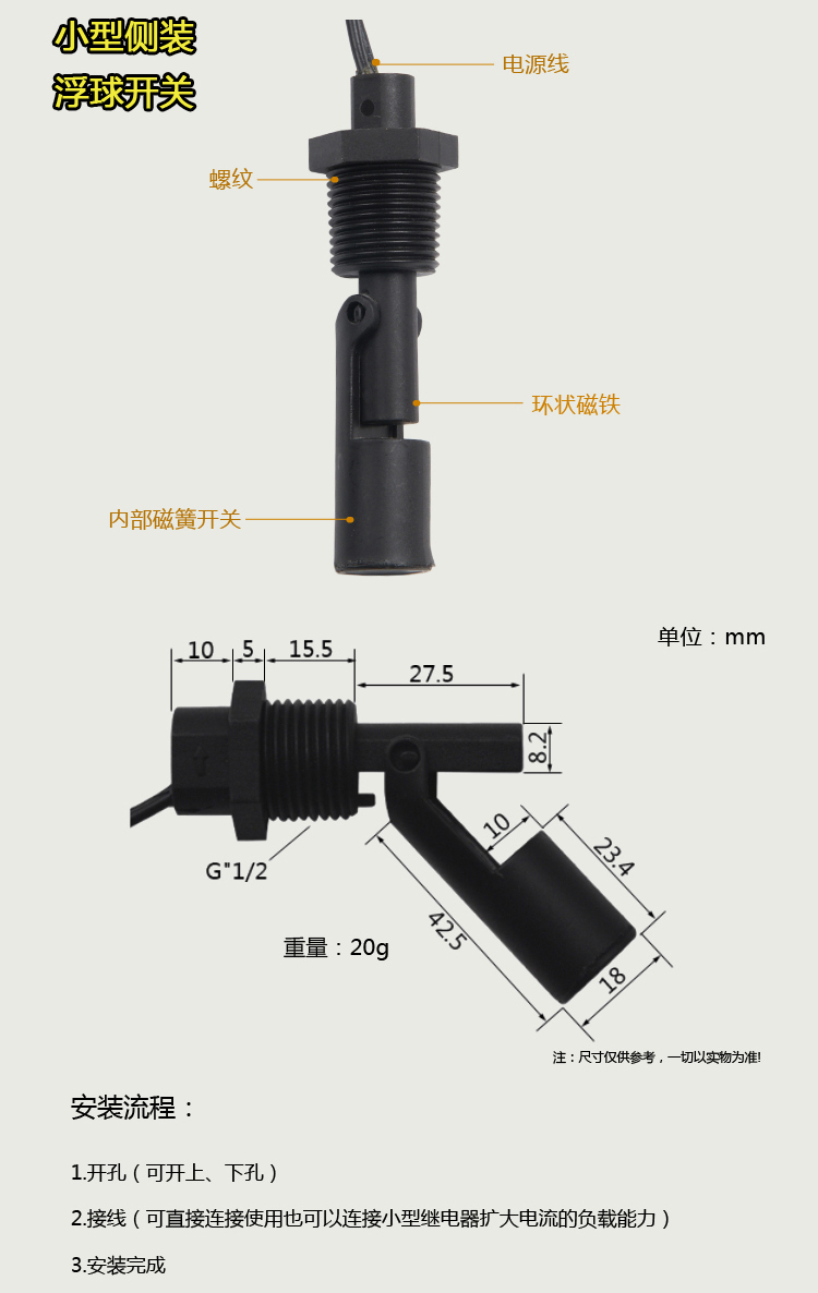 可直接安裝于容器的側壁點,安裝基為方便。同時開關采用不銹鋼材料組成,且與外界完全隔離,故具有使用壽命長,防爆、耐腐蝕性能等特點。
