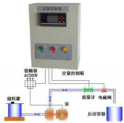 定量控制器系統(tǒng)是由流量計(jì)、流量流量定量控制儀、電磁閥和配電箱等裝置組成。